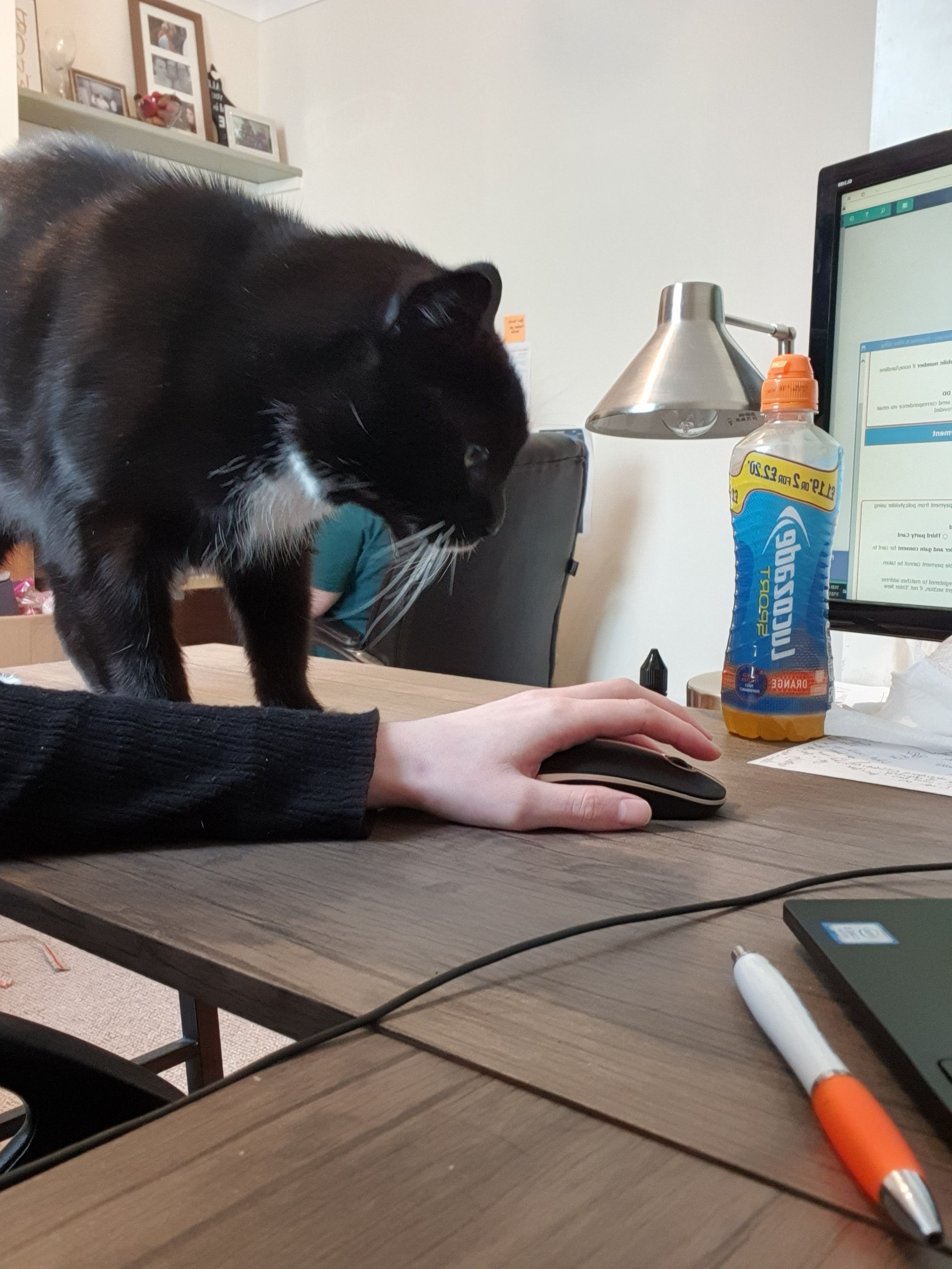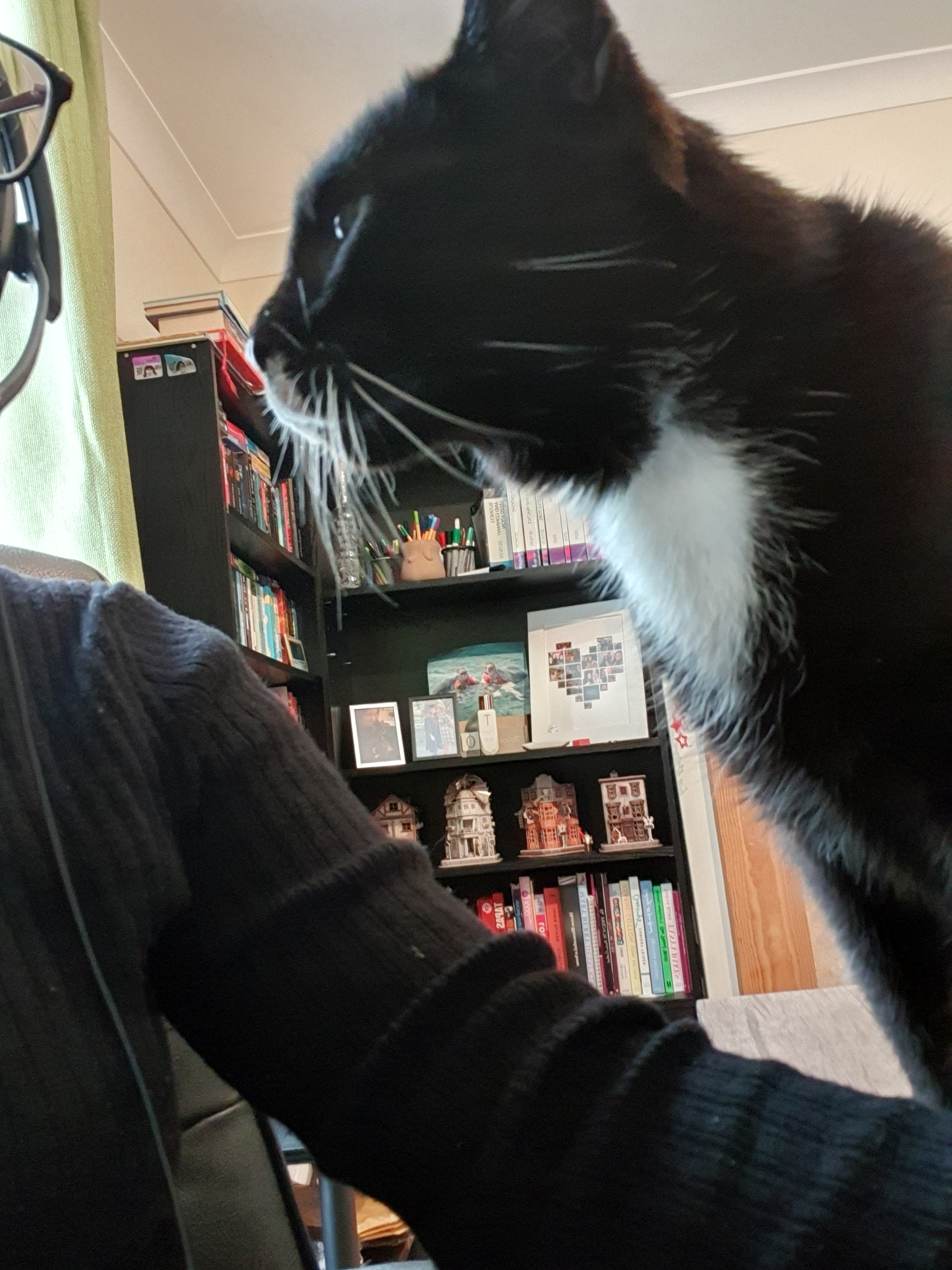 For a couple of months I’d clear one side of the desk for him to lay on, but he’s not exactly a small cat and this didn’t work for me, so he now has his own ‘desk’ by the window behind my chair. Despite him having his own ‘desk’ he still has to visit mine first and then leap between the two depending on if and when he wants attention.